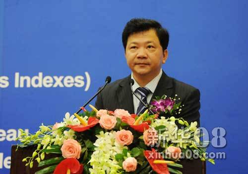 新华社上海分社社长兼新华社金融信息平台上海总部主任慎海雄致欢迎辞 新华08网彭桦摄