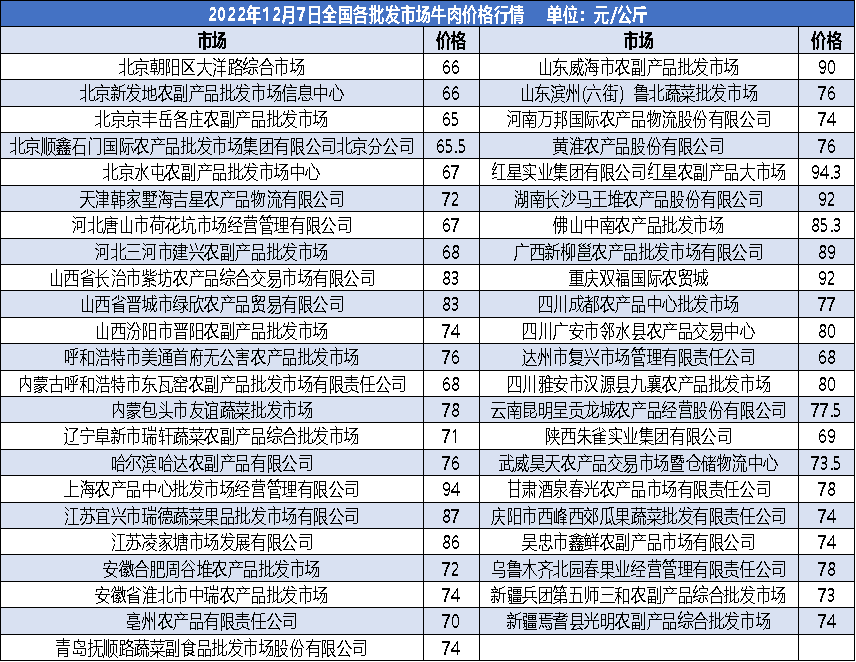 全国批发市场牛肉价格